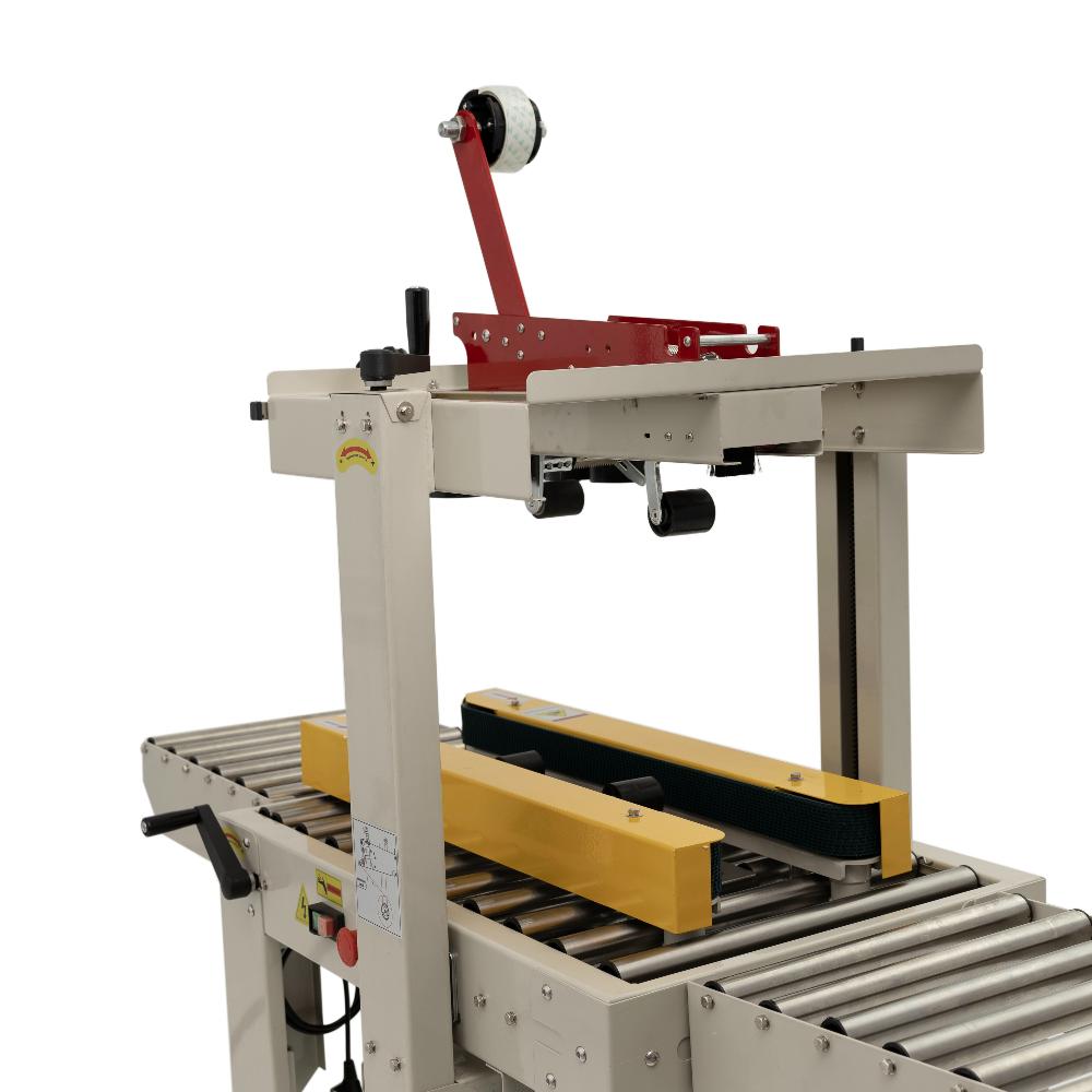 это профессиональное оборудование для быстрой и аккуратной заклейки верхних и нижних стыков картонных коробов клейкой лентой (скотчем). Модель предназначена для малых и средних предприятий в сфере пищевого производства, упаковки и фасовки, складской логистики и интернет-торговли. Заклейщик оснащён боковыми конвейерными ремнями для автоматической протяжки короба, что обеспечивает непрерывный процесс упаковки без необходимости постоянного присутствия оператора.